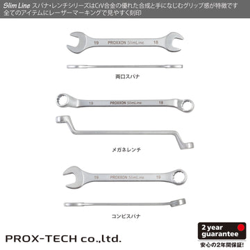 31CrV3を原材料としたスパナは薄さと耐久性を持ち 深く刻まれたレーザーマーキングが施され素早く直観的な選択を可能にします。